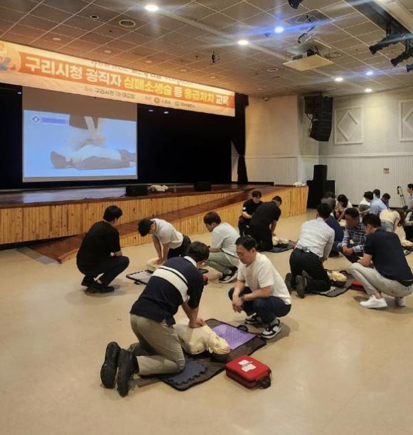 [한국뉴스타임=편집국] 구리시는 9월 22일부터 23일까지 이틀간 청사 대강당에서 공직자 100여 명을 대상으로 '심폐소생술 등 응급처치 교육'을 진행했다.