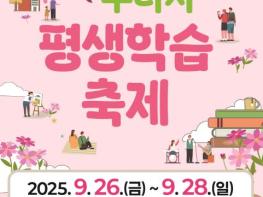 올해 축제는 ‘평생학습으로 하나 되는 즐거운 구리시’를 주제로, 남녀노소 누구나 함께 배우고 소통하며 즐길 수 있는 체험 프로그램과 경연대회 등 다채로운 행사로 구성된다. 특히 어린이부터 노년층까지 세대별 맞춤형 프로그램이 마련돼 온 가족이 함께 즐길 수 있는 축제가 될 것으로 기대된다.