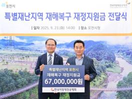 전달식에 참석한 한국지방재정공제회 차병준 옥외광고센터장은 “재정지원금이 포천시의 신속한 피해 복구에 작은 힘이나마 보탬이 되길 바란다”고 말했다.