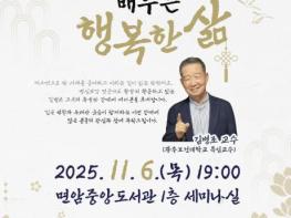[한국뉴스타임=편집국] 포천시는 오는 11월 6일 면암중앙도서관에서 김병조 광주보건대학교 특임교수를 초청해, ‘명심보감에서 배우는 행복한 삶’을 주제로 특강을 개최한다.