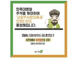 [한국뉴스타임=편집국] 남양주시는 추석을 맞아 위축된 소비심리 회복과 지역 내 소비 촉진을 위해 10월 한 달간 남양주사랑상품권 인센티브 충전 한도를 기존 월 30만 원에서 50만 원으로 상향한다고 25일 밝혔다.