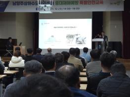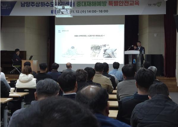 [한국뉴스타임=편집국] 남양주시는 지난 12일 별내주민자치센터 4층 대강당에서 상하수도관리센터가 직원 및 협력업체 임직원 100여 명을 대상으로 ‘중대재해예방 특별안전교육’을 진행했다고 밝혔다.