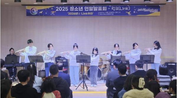 [한국뉴스타임=편집국] 구리시청소년재단 청소년문화의집은 지난 12월 20일, 청소년동아리와 청소년 강좌 수강생을 비롯해 가족과 친구들이 함께 참여한 ‘2025년 청소년 연말 발표회-Link’를 구리시청소년문화의집 드림홀에서 개최했다.