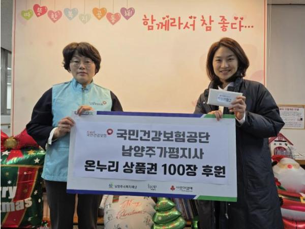 [한국뉴스타임=편집국] 남양주시는 지난 23일, 국민건강보험공단 남양주가평지사가 지역 내 취약계층 지원을 위해 온누리상품권 100만 원을 남양주시 사회복지관 동부희망케어센터에 기탁했다고 밝혔다.