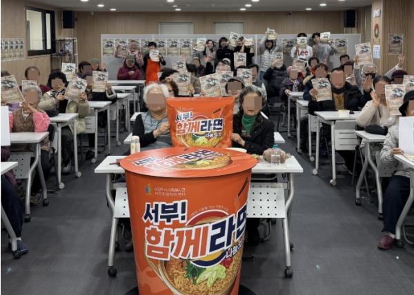 이날 행사에 참여한 주민들은 떡라면과 다과를 함께 나누며 새해 인사를 건넸고, 1956년 개봉작인 고전영화 ‘시집가는 날’을 함께 관람하며 추억을 공유하는 시간을 가졌다.