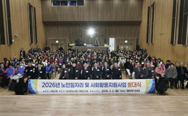 가평군은 이날 오전 음악역1939 1층에서 ‘2026년 노인일자리 및 사회활동지원사업 발대식’을 개최했다. 행사에는 서태원 가평군수를 비롯해 가평군의회 의장과 군의원, 대한노인회 가평군지회 관계자, 노인일자리 참여 어르신 등 약 250명이 참석해 사업 시작을 함께했다.