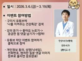 특강은‘구리비전’ 채널을 통해 시청할 수 있다. 시청 후 6일부터 19일까지 궁금한 사항을 댓글로 남기면 우수질문 3건을 선정해 한양대구리병원 심장내과 김병식 교수가 직접 답변할 예정이다. 또한 참여자 중 17명을 무작위로 선정해 우수 질문자 3명을 포함한 총 20명에게 모바일 쿠폰을 증정한다.