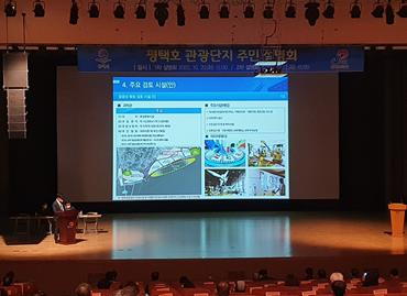 평택도시공사(사장 김재수)는 20일 평택 한국소리터 지영희홀에서 평택호 관광단지 개발사업에 대한 주민설명회를 개최했다고 밝혔다.