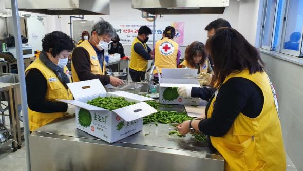[KNT한국뉴스타임] 대한적십자사봉사회 연천지구협의회(회장 임동규)는 11월 10일 연천군 종합복지관 3층 조리실에서 소외계층 및 독거노인 30가구를 대상으로 회원 15명과 함께 반찬봉사 활동을 진행하였다.