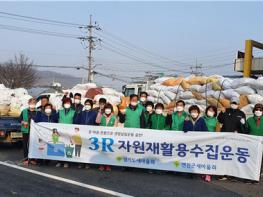 [KNT한국뉴스타임] 연천군 백학면새마을부녀회가 16일 백학면 학마을 주차장에서 ‘3R 자원재활용 수집운동’ 행사를 가졌다. 이번 행사는 헌옷, 이불, 신발 등을 재활용해 자원낭비를 막고 수익금을 기부해서 이웃사랑을 실천하자는 취지에서 마련되었다.