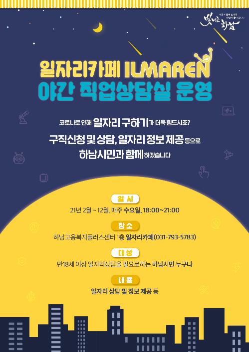 [KNT한국뉴스타임] 하남시는 다음달부터 하남고용복지플러스센터 1층 일자리카페에서 주 1회 야간 직업상담실을 운영한다고 27일 밝혔다.