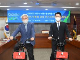 [KNT한국뉴스타임] 오산시는 지난 2일 시청 상황실에서 ㈜나인투원(대표 배지훈)과 공유 전기자전거(일레클) 운영에 대한 업무협약을 체결했다고 밝혔다.