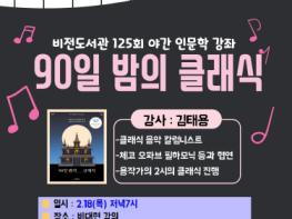 오는 18일 저녁 7시에 온라인으로 진행되는 125번째 인문학 강좌는 '90일 밤의 클래식'의 저자 김태용 작가를 초청, 특별한 이야기가 있고 누구나 공감할 수 있는 고전음악을 통해 참가자들의 상상력을 자극하는 강연으로 클래식과 친숙해지는 특별한 경험을 선사할 것으로 기대된다.