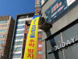 이날 ▲간판추락 상황접수 후 신속히 현장에 투입 ▲추락위험지역 통제라인 설정 ▲안전이 확보된 보행로확보 ▲추락위험 간판제거 및 안전로프 등으로 응급조치작업 ▲보수 보강 작업 등을 훈련했다.