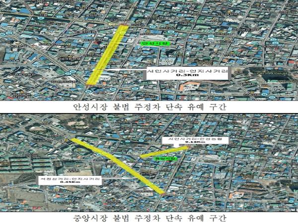 단속 유예 구간은 안성시장(서인사거리~인지사거리 구간 양측 300미터)과 중앙시장(서인사거리~안성농협 양측 120미터, 석정삼거리~인지사거리 양측 450미터) 주변도로이다.