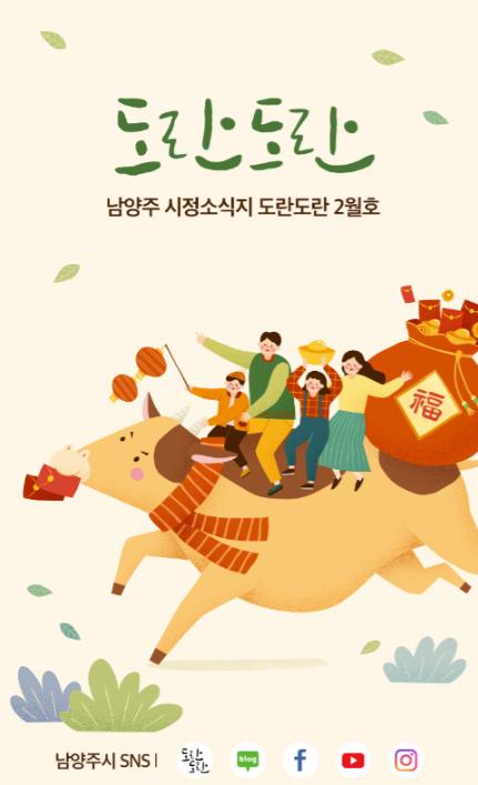 모바일로 발행되는 도란도란 2월호에는 촘촘한 사회복지안전망을 구축하는 남양주시복지재단, 롯데백화점 구리점에 입점한 Green 남양주, 저소득층 자립을 돕는 자산형성지원사업, 공영주차장 등 알찬 시정정보를 포함하여 시민이 직접 지역소식을 전하는 시민리포터의 소소한 기사들도 함께 담았다.