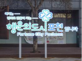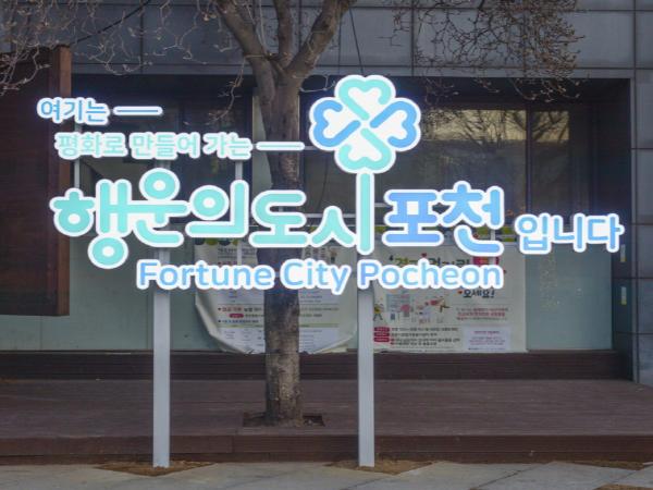 포천시는 행운을 상징하는 네 잎 클로버를 디자인의 토대로 하여 손을 잡고 있는 네 사람(평화, 포용, 소통)과 사랑의 형상을 조합하여 문장을 만들었다. 색상은 청정 그린과 블루 컬러로 맑고 깨끗한 포천의 이미지를 표현했고, 유선형의 독창적인 서체로 평화와 화합의 의미를 담았다. 브랜드 슬로건은 포천의 지리적, 상징적 도시 가치가 평화시대를 열어가는 행운의 열쇠라는 의미를 담았다.
