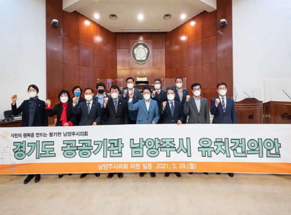 시의회는 남양주시가 그동안 중첩규제로 인해 체계적인 도시발전이 어려웠던 점을 들어 공공행정 인프라가 절실하다고 하였으며, 지리적으로 경기 동북부 관문지역에 자리하고 있는 요충지로 소외된 경기 북·동부 지역의 균형 발전을 위해 추진하고 있는 경기도 제3차 공공기관 이전의 최적지임을 내세웠다.