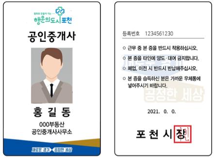 [한국뉴스타임=명기자] 포천시는 무자격·무등록 부동산 중개업자들의 불법 중개행위로부터 시민들을 보호하기 위해 공인중개사 명찰 패용 및 부동산중개사무소 QR코드 스티커 부착을 전면 시행한다.