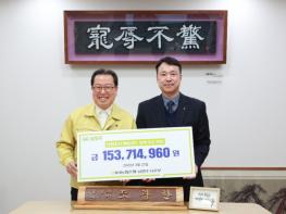 이날 전달식에는 조광한 남양주시장과 소병연 NH농협은행 남양주시 지부장 등의 관계자들이 참석한 가운데, 소병연 지부장이 시와 NH농협은행 간 제휴카드 협약에 따라 조성된 기금 총 1억5천3백71만4천960원을 시에 전달했다.