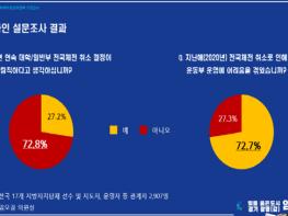 특히 전국체전 취소로 인해 응답자의 80% 수준이 선수 경기력 저하, 선수 경력 단절, 운동부 축소 운영, 운동부 해체 등에 영향을 줄 것이라고 답했다.