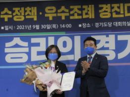 이번 ‘더불어민주당 경기도당 우수조례’는 경기도당 소속 선출직 공직자 대상으로 정책자문위원 중 5명을 심사위원으로 위촉하여 1차 심사에서 7개 지표(혁신성, 민주성, 합법성, 형평성, 효과성, 효율성, 참여도)를 평가하고, 2차 심사에서 3개 지표(1차 심사 반영, 확장성, 강령 부합성)를 평가하여 선정한 것으로, 시상식은 사회적 거리두기 지침을 철저하게 준수하여 최소 인원만 참석하여 상장을 수여하는 형식으로 진행됐다.