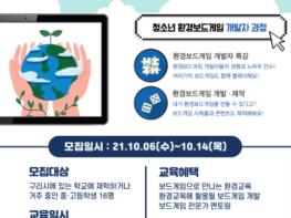 모집 기간은 10월 6일부터 14일까지이고, 환경과 보드게임에 대해 알고 싶은 구리시 소재 학교에 재학하거나 거주 중인 중·고등학생 16명을 선착순으로 모집한다. 교육은 10월 16일부터 12월 11일까지 매주 토요일 진행될 예정이다.