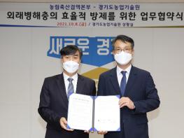 [한국뉴스타임=명기자] 경기도농업기술원이 8일 화성 도 농기원에서 농림축산검역본부와 도내 농작물에 큰 피해를 주는 외래병해충 차단 확산과 효율적 방제를 위한 업무협약을 체결했다.