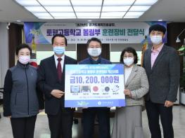 강예석 체육회장은 “경기도 체육진흥공모 사업을 통해 지원받은 훈련 장비를 잘 활용하여 토평고등학교가 전국 최고의 선수를 배출할 수 있기를 바란다.”고 당부했다.