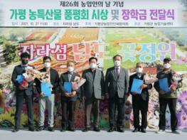 [한국뉴스타임=명기자] 가평군농업기술센터에서는 농산물 품평회 시상 및 장학금 전달식을 10월 27일 자라섬 남도 야외 행사장에서 개최했다.