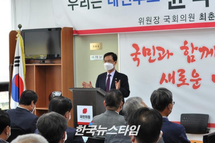 지난 26일 국회에서 국민의힘 현직 국회의원 7명과 함께 최춘식 의원이 윤석열 국민의힘 제20대 대통령선거 예비후보 ’국민캠프’에 영입돼 경기선대위 공동위원장직을 수락 후 지역 당협 핵심당원들과 뜻을 같이 하겠다는 모임이다.