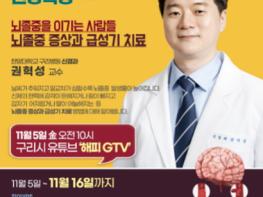 [한국뉴스타임=명기자] 구리시는 5일 구리시 공식 유튜브 한양대구리병원 전문의와 함께하는 나를 지켜주는 건강특강 11월 ‘뇌졸중을 이기는 사람들’편을 방송했다.
