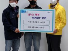 이해곤 북면장은 “다가올 강추위에 대비가 취약한 저소득층 계층들을 위해 몸소 나눔 문화에 실천하는 최광근 대표에게 감사를 드리며, 후원품은 필요한 주민에게 전달하여 따뜻한 동절기를 준비 할 수 있도록 하겠다”고 전했다.