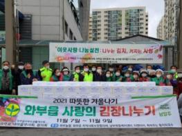 ‘사랑의 김장 나누기’ 행사는 와부읍 새마을부녀회가 주관하고 지역사회보장협의체, 새마을지도자회, 아파트생활개선회, 남부희망케어센터 등이 협력해 진행됐으며, 올해에는 사회단체 회원들이 직접 수확한 배추와 무를 절이고 버무리는 등 정성을 담아 김장 김치를 담갔다.