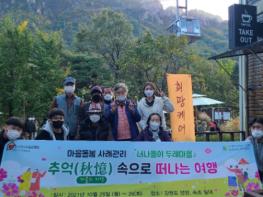 [한국뉴스타임=명기자] 남양주시복지재단 남부희망케어센터는 지난 10월 25일~26일과 11월 8일~9일, 두 번에 걸쳐 어르신 10명과 함께 ‘추억(秋憶) 속으로 떠나는 여행’이라는 주제로 1박 2일 문화 나들이를 실시했다고 밝혔다.