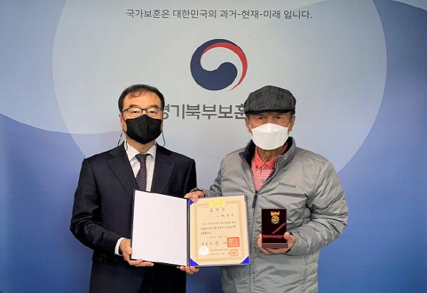 [한국뉴스타임=명기자] 경기북부보훈지청은 2021년 11월 11일 14:00, 경기북부보훈지청 지청장실에서 故황중수 지사의 유족에게 표창장을 전수하였다.