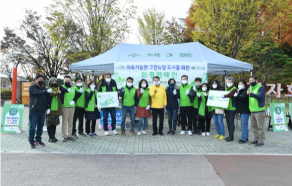 [한국뉴스타임=명기자] 구리시 지속가능발전협의회는 12일 장자호수생태공원 광장에서 『그린뉴딜, 구리』 시민실천 10대 과제 홍보 캠페인을 벌였다.