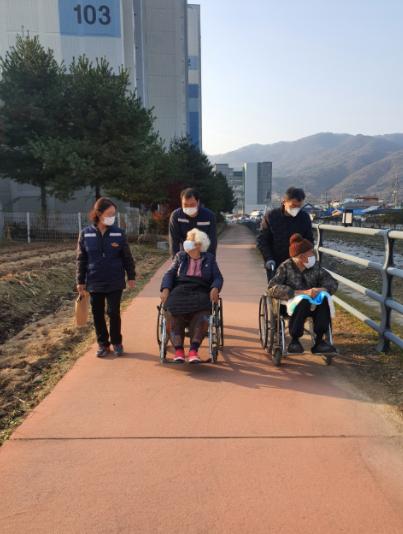 일동면 경기행복마을관리소는 최근 휠체어를 이용한 산책 서비스를 시행하고 있다. 주민들의 두 발이 되어 드리는 ‘사랑의 휠체어 산책 서비스’는 현재까지 총 9건을 완료했으며, 현재도 진행 중이다.