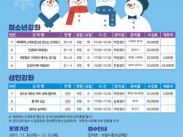 [한국뉴스타임=명기자] 수원시청소년재단 천천청소년문화의집은 11월 16일부터 11월 25일까지「겨울방학 대면특강 문화강좌 수강생을 모집한다.