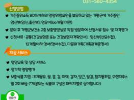 접수는 연중 이루어지고 있으며, 신청을 희망하는 이는 전화 상담 후 필요 서류를 준비해 보건소 2층 보충영양실로 방문하면 된다.