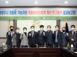 [한국뉴스타임=명기자] 남양주시의회 의원연구단체 ‘남양주시 재활용 가능자원 재활용처리체계 개선 연구모임’이 18일 시의회 소회의실에서 연구용역 결과보고회를 개최했다.