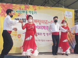 [한국뉴스타임=명기자] 17일 설악면 가일2리 마을에서 마을 주민, 관계자, 관계 공무원 등 100여명이 참석한 가운데 가일2리 「가을바람타고~ON 어비계곡 마을 축체」를 개최하였다. 이 자리는 2021년 아람마을만들기 주민공동체 활동으로 마을경관조성사업을 운영하면서 조성된 메밀꽃밭에서 수확한 메밀로 만든 전병을 주민들과 함께 나누며 축제를 통한 나눔을 실천하는 자리였다.