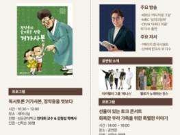 오후 2시 2부에서는 거가사본을 바탕으로 정약용 선생의 삶과 철학을 이야기하는 심용환 역사학자의 인문강연과 아카펠라 그룹 제니스, 첼로가 노래하는 진스의 음악 힐링 공연이 120분간 진행된다. 평화롭고 건강한 가정을 만드는 지혜를 공감․소통하는 장이 될 것으로 기대된다.