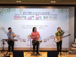 [한국뉴스타임=명기자] 포천시육아종합지원센터는 지난 17일 포천시립중앙도서관에서 코로나19로 변화된 양육환경에도 묵묵히 최선을 다해 보육 현장을 지키고 있는 보육교직원에 대한 감사와 위로의 마음을 담아 ‘어린이집-사랑-뮤직 LIVE 힐링콘서트’를 개최했다.