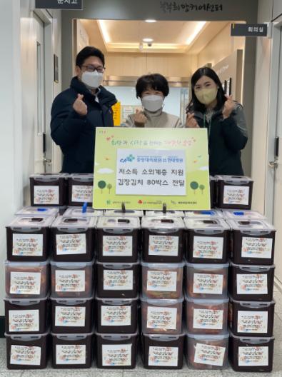 [한국뉴스타임=명기자] 남양주시 진접읍에 소재한 현대병원은 지난 19일 김장철을 맞이해 저소득 소외계층을 위한 336만원 상당의 김장김치 80박스를 남양주시복지재단 산하 북부희망케어센터에 전달했다.