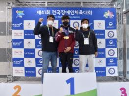 [한국뉴스타임=명기자] 지난달 경북 구미에서 열린 제41회 전국장애인체육대회에서 경기도 최초 육상 4관왕이 탄생했다. 남자 400m와 800mDB, 400m 계주와 1,500mDB 등 4종목에서 당당히 금메달을 목에 건 주인공은 포천시청 육상경기부 소속 이무용 선수(33)다.