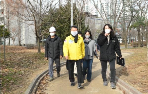 이어 한강시민공원을 찾아 시민들의 안전을 위해 전면 재정비한 보행 산책로와 새롭게 조성하고 있는 공원의 수목 식재 현황, 동절기 준비상황 등을 점검하였다.