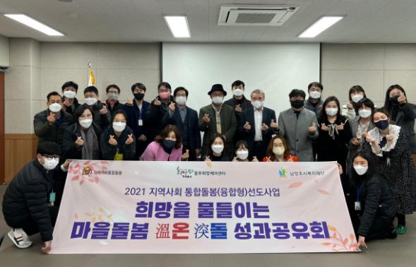 [한국뉴스타임=편집국] 남양주시사회복지관 산하 동부희망케어센터는 지난 7일 남양주시복지재단, 동부권역 행정복지센터, 마을돌봄 네트워크, 마을활동가 및 35개 지역 유관 기관과 함께 2021년 통합돌봄 선도사업 ‘희망을 물들이는 마을돌봄 溫?(온돌)’ 성과공유회를 실시했다.