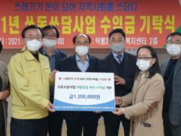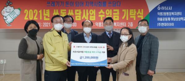 올해 쓰돈쓰담에서 발생한 재활용품 매각 수익금 67만원 전액은 덕풍2동에 기탁돼 어려운 이웃을 돕는 데 사용된다. 재활용품 수거업체인 ㈜현대이아이(대표 유영채)도 기업의 사회공헌 차원에서 매각 수익금에 추가 기부해 총 120만원의 성금을 모았다.