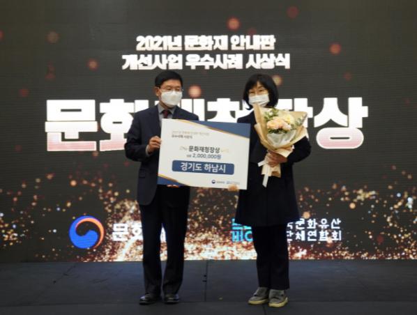 [한국뉴스타임=편집국] 하남시가 지난 7일 문화재청 주관으로 열린 ‘2021년 문화재 안내판 개선사업 우수사례 시상식’에서 기초지자체 부문 우수기관으로 선정돼 문화재청장상을 수상했다.